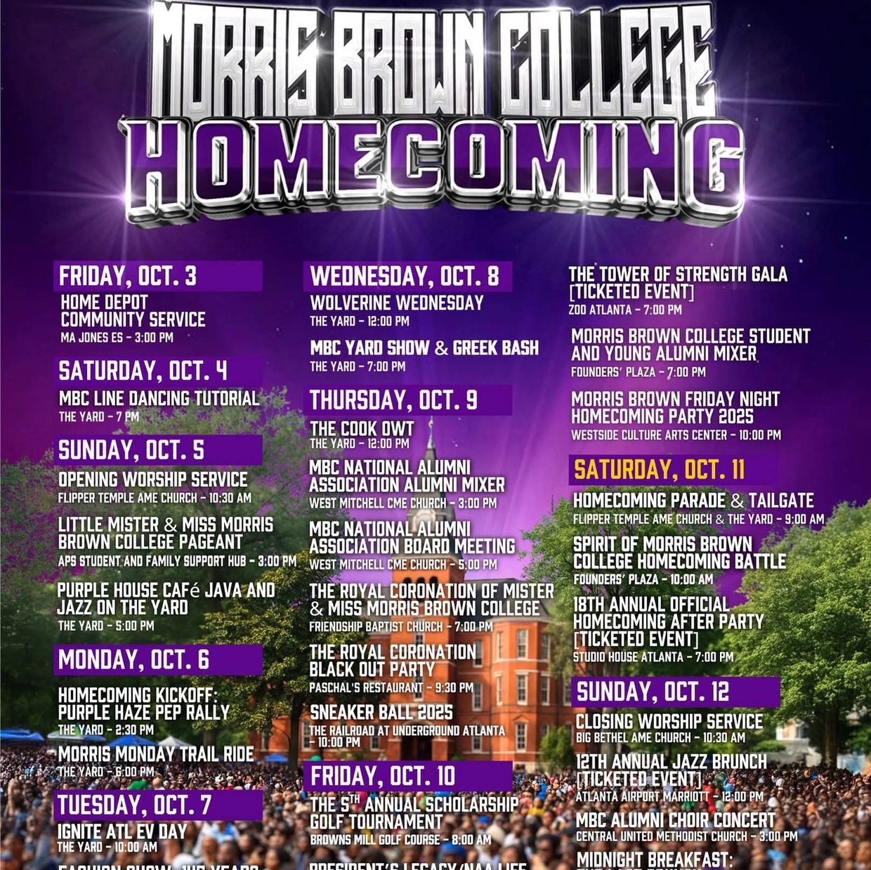 Morris Brown Band Foundation will keep you informed about the preparation of the 2025 MBC Homecoming Alumni Band.